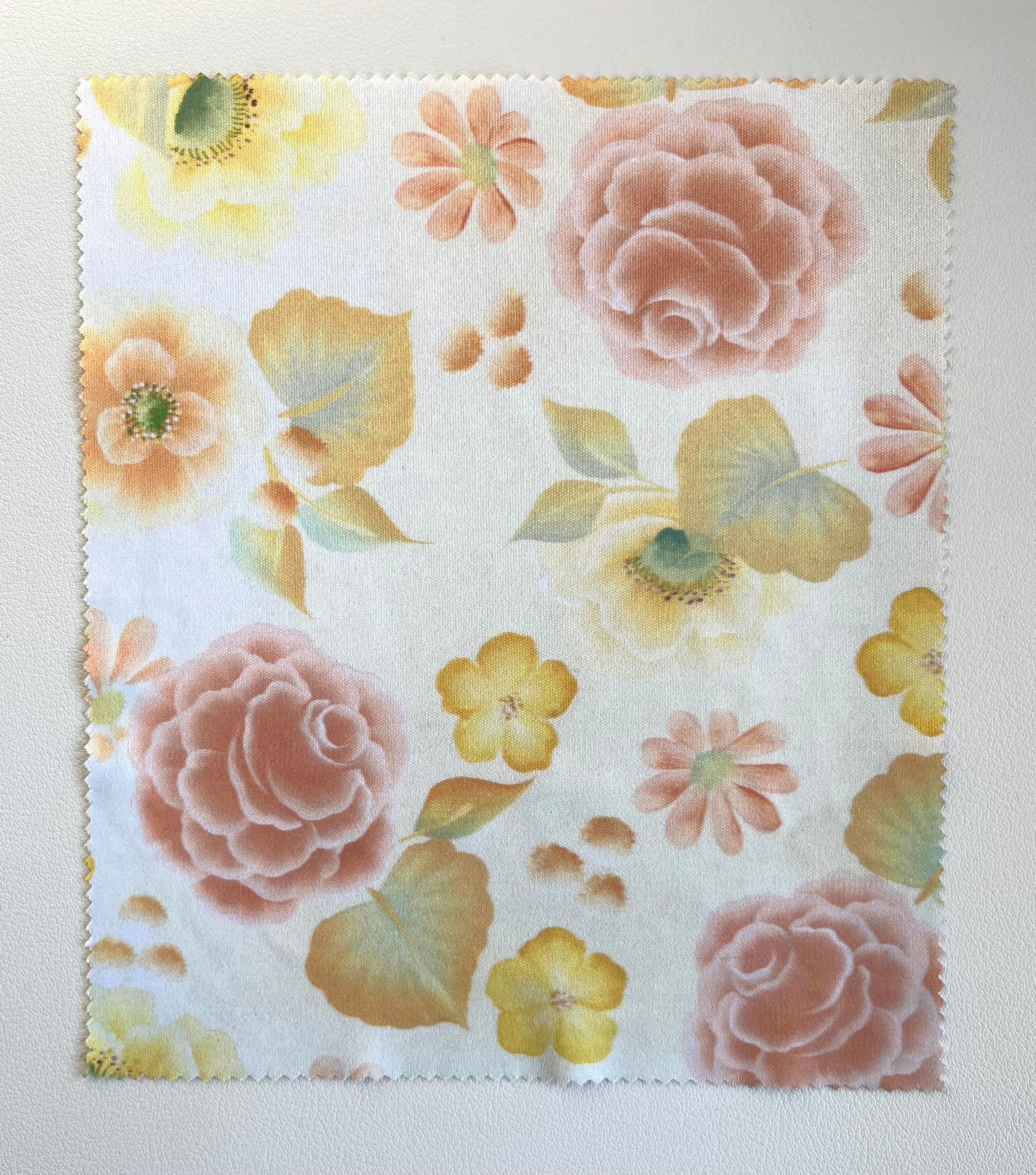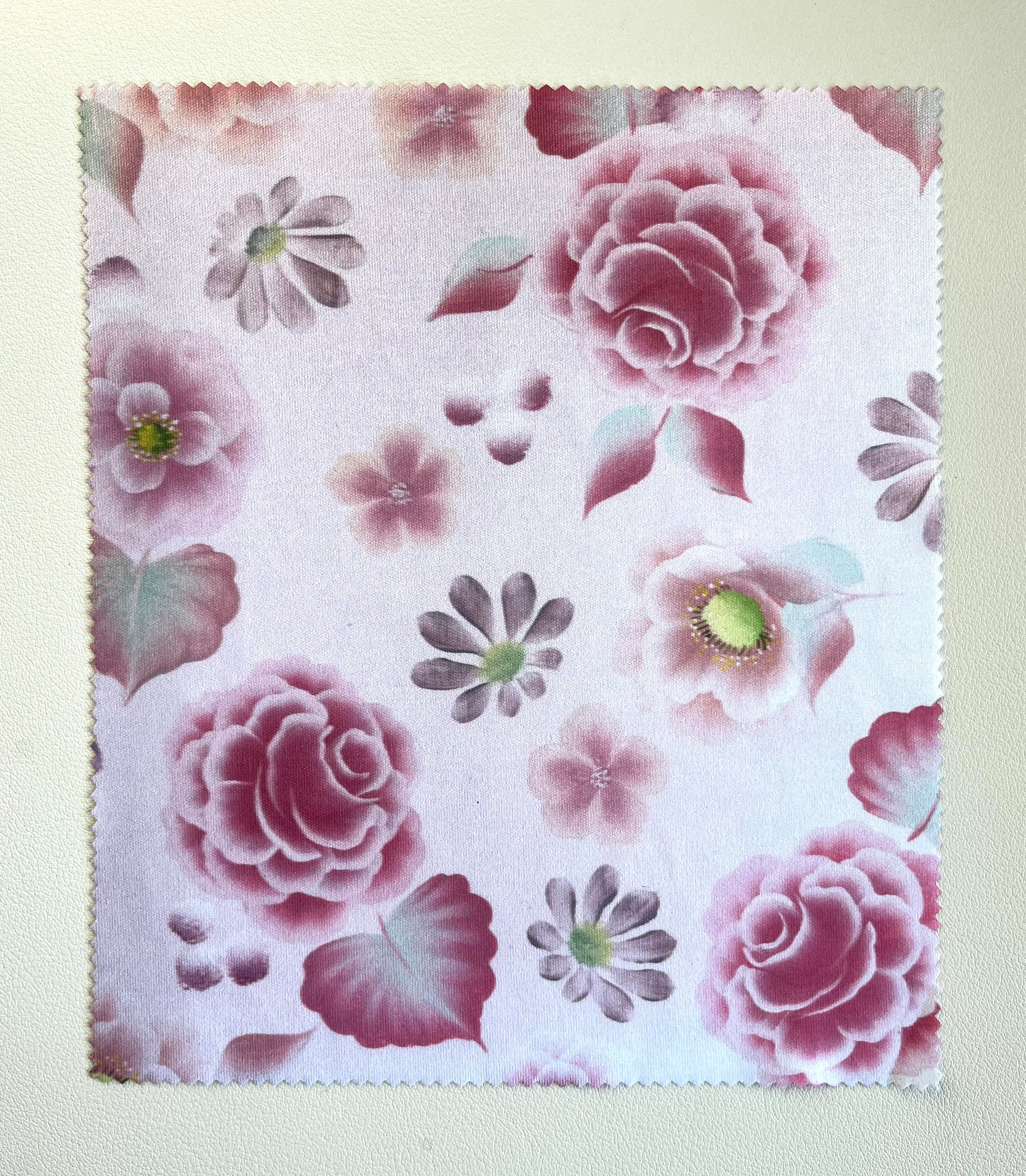 ワンストロークペイントで描いた、優しい色合いのお花を散りばめた